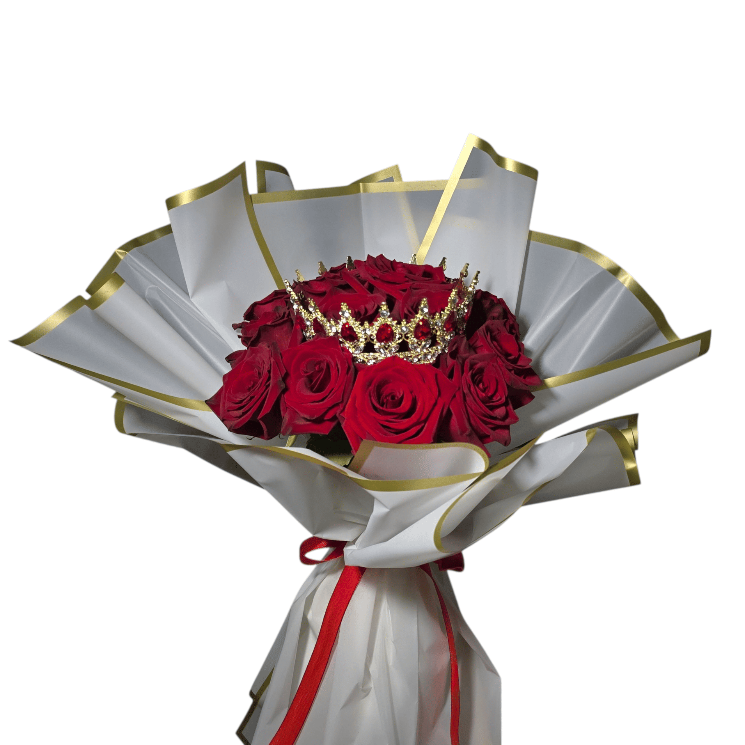 Ένα μπουκέτο με 15 τριανταφυλλα που αποπνέει βασιλική κομψότητα. Κόκκινα τριαντάφυλλα, σύμβολο αγάπης και πάθους, στολισμένα με διακοσμητικό στέμμα για να χαρίσουν στη στιγμή μοναδική αίγλη. Η ιδανική επιλογή για να εκφράσετε τον απόλυτο θαυμασμό και να κάνετε το αγαπημένο σας πρόσωπο να νιώσει βασίλισσα.